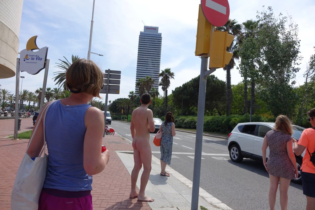 The performer strips nude in a public area but in a location where they will not be immediately noticed. An assistant then collects their clothes, and any other items such as wallets or phones from them. The assistant then leaves and heads to a pre-agreed location. The perform waits a few minutes and then starts walking to the meet point. Sadly the nature of this performance means there are no photos available!